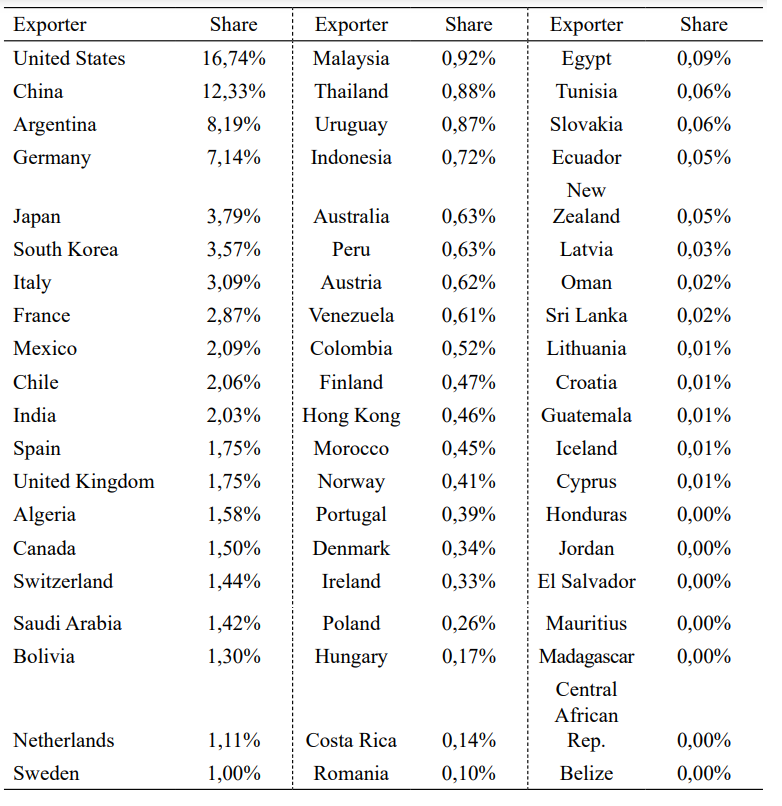 Particularly, Brazil has experienced interesting changes over the years. From 1997 to 2000, its trade balance registered negative figures, meaning that the import trade value of this nation surpassed its exports. As of 2000, the country has altered this condition and has developed its commercial structure to become a net exporter. Nevertheless, imports showed an average annual increase of 1.24% between 1997 and 2016, and nearly 138 billion dollars’ worth of imported goods in 2016 (Comexstat, 2018).