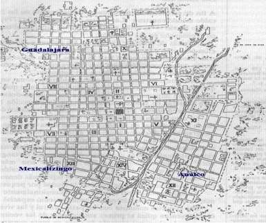 El uso simultáneo de los espacios, no fue hecho en igualdad de circunstancias, sino siempre acorde a “la relación dominado-dominante”(Anderson, 1983, p.138-139). Situación que también se reprodujo en la forma de organizar el espacio urbano en Guadalajara. José Antonio Sánchez Villaseñor, al escribir acerca de la visita que realizó a la capital neogallega, resaltó que muchas viviendas eran de una sola planta, sus calles estaban hechas “a la moderna, por ser todas rectas, dilatadas y anchas, unas de doce, y otras de catorce varas”, y además había “ocho plazas repartidas en la ciudad”, en donde las construcciones religiosas dominaban el paisaje.