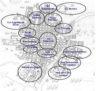 La capital de la Nueva Galicia se organizó en barrios, donde se construía “la identidad de sus moradores”, quienes compartían prácticas y valores particulares, distinguiéndolos de otras unidades barriales (Olveda, 2000, p. 78).
