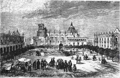Desde su visión, el aspecto de Guadalajara era “triste y desagradable”, pues la mayoría de las calles carecían de empedrado y algunas hasta de banquetas; por otro lado, las fachadas de las casas se caracterizaban por “la irregularidad de las ventanas” y sus rejas de madera. La plaza principal, rodeada por frondosos fresnos, estaba empedrada y en su centro se encontraba una fuente, mientras que las plazuelas estaban “cubiertas de zacate” lo que imprimía a la capital un “aire melancólico, que revelaba el poco movimiento que en ella había” (Iguíniz, 1989, p.92).