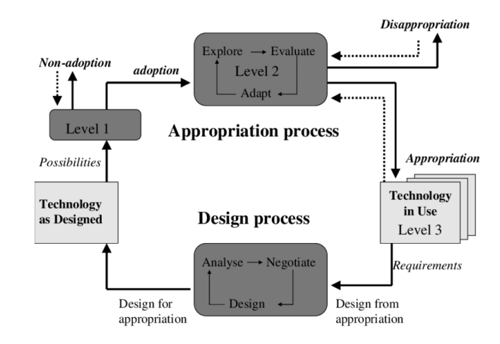 Thus, simultaneous processes of appropriation, reappropriation, non-appropriation, or expropriation converge. The citizen appropriates a technology as long as there is the possibility of adapting it to his own needs. According to Carroll (2004), the design processes are completed during the appropriation process made by the individual (figure 1).