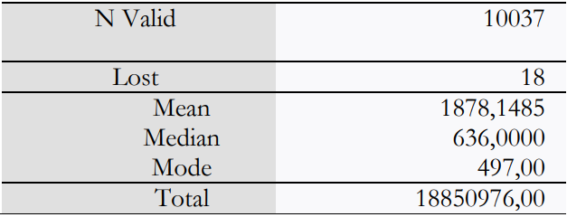 Table 1 and graph 1 show that, the Twitter users who participated in the #SOSCOLOMBIA movement have 56,445,350.00 followers, with an average of 5,629.33, a median of 345, and a mode of 258. Table 2 and graph 2 show that users who participated in the #SOSCOLOMBIA movement have a total of 18,850,976 friends on Twitter, with an average of 1878.14, a median of 636, and a mode of 497.
