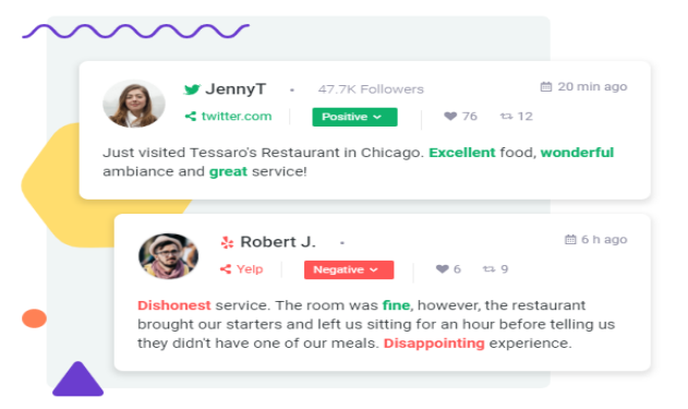 Brandwatch (2015) uses a rulemaking process to help software better understand how that context can affect sentiment. All words and phrases that imply a positive or negative feeling are taken, and rules are applied that consider how the context could affect the tone of the content. These carefully created rules help the software know that the first sentence (above) is positive and the second negative. In figure 1, we can see how the software would classify messages that use words such as “excellent” and “wonderful” as positive. In contrast, while words such as “dishonest” and “disappointing” would be classified as negative (Páez & Solano, 2021).