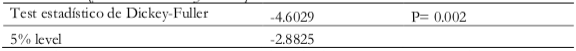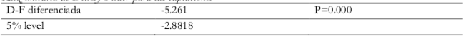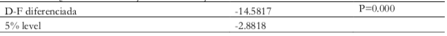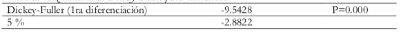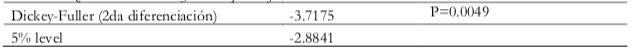 En la Tabla 3, la variable oferta monetaria solo es significativa para la segunda diferenciación y gráficamente se observa una tendencia razón por la cual se le realizó una variación porcentual.