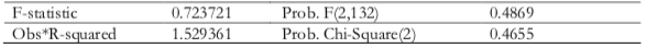 Con estos datos se corrobora que la probabilidad del chi cuadrado es mayor que 0.052 por lo que no rechazo H0 y por tanto no existe correlación serial, definiendo así un estado deseable ya que implica que el modelo es válido y eficiente para realizar las inferencias (Tabla 6).