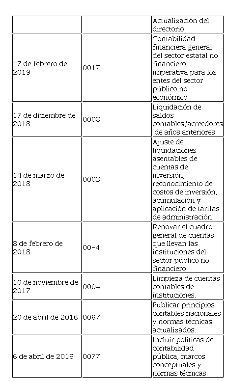 Normas contables aplicables: El Ministerio Financiero, al formular la normativa contable gubernamental, tendrá en cuenta las normas internacionales de contabilidad del sector público y será de obligado cumplimiento para el presupuesto general del Estado y las unidades de gobierno autónomo descentralizado. Las empresas, los bancos estatales y los seguros sociales deben tener en cuenta planes claros de consolidación de cuentas emitidos por el Ministerio.