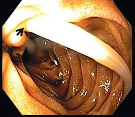 Al tercer día de hospitalización, el dolor epigástrico persistente y el antecedente de melenas motivó la realización de una endoscopia digestiva alta, a través de la cual se evidenció un ejemplar de Ascaris enclavado en la papila duodenal que fue retirado con una pinza asa para cuerpo extraño (anexos, figura 3).