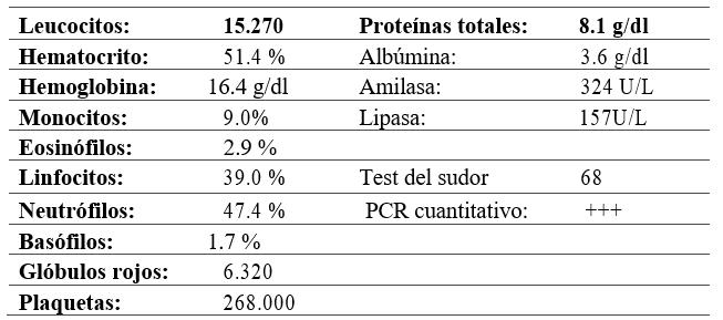 El cuadro clínico de la paciente pediátrica del caso de fibrosis quística que se presenta permitió observar particularidades que le hacen inusual para ese grupo etario, al observarse complicaciones respiratorias y el desarrollo de pancreatitis. Los protocolos de manejo de la enfermedad, seguidos en las instituciones médicas involucradas, estuvieron acorde con los estándares establecidos a nivel nacional e internacional, obteniéndose los resultados esperados atendiendo a las características del caso en cuestión.