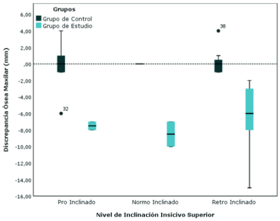 Figura 3. Discrepancia ósea por nivel de inclinación incisivo superior