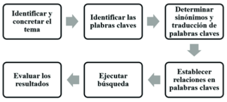 La estrategia de búsqueda de información siguió el esquema propuesto por los autores (Figura 1). Los autores utilizaron diferentes navegadores y motores de búsqueda adecuados a los requisitos de inclusión, además de hacer uso de operadores lógicos.