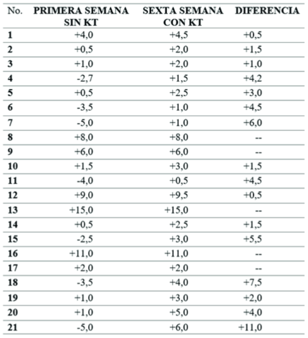 Merino et al.,(22) mediante el SR, lograron establecer que el uso del KT produjo mejoras significativas en la flexibilidad isquiotibial y lumbar (p<0.05) de triatletas sanos.
