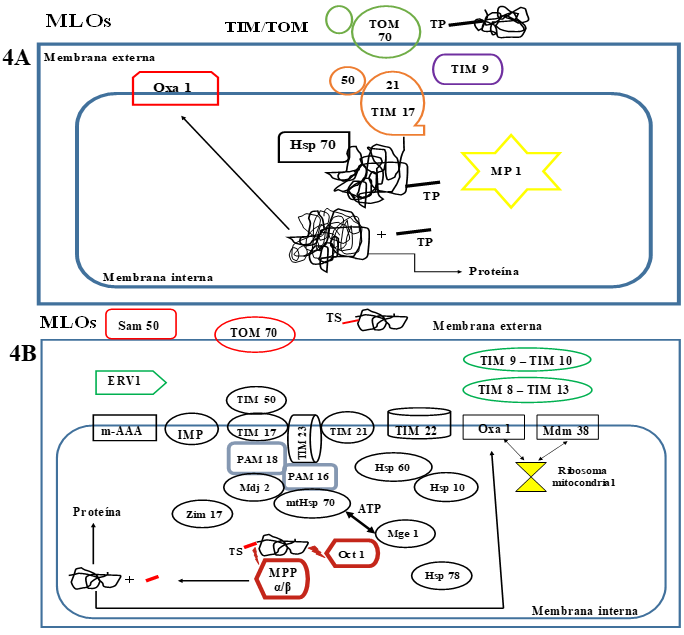 La presencia de variantes del mecanismo de importación de proteínas TIM/TOM parece ser común a todos los tipos de MLOs con diferentes niveles de complejidad.(58,59,60) En 2008, se identificaron varias proteínas de la maquinaria de importación TIM/TOM en Blastocystis, identificando una proteína metaloproteasa 1 que podría tener misma función (figura 4). Esta característica es distintiva del metabolismo demamíferos.(47)