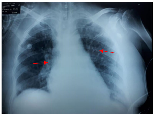 Figura 1. Radiografía de tórax AP, infiltrado intersticial bilateral