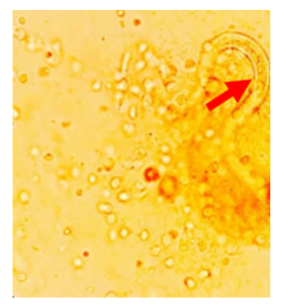Figura 2. Larva de Strongyloides stercoralis en muestra de broncoaspirado