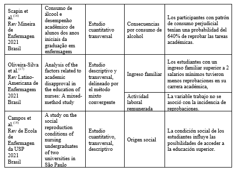 Socioeconomic factors and academic performance in nursing students. Integrative literature review