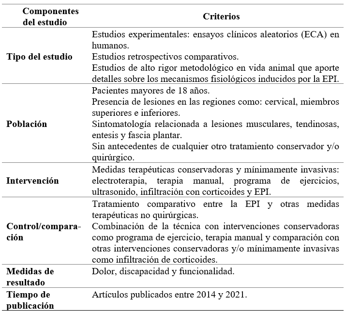 Por lo que, la investigación tuvo el objetivo de analizar la bibliografía sobre las diferentes intervenciones mediante EPI, como tratamiento en lesiones del tejido musculoesquelético para una perspectiva más clara de posibles resultados a corto, mediano y largo plazo.