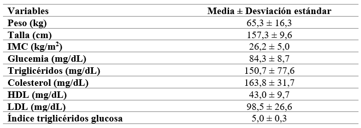 Los participantes con obesidad tuvieron valores más altos de glucemia, triglicéridos y colesterol total que los otros grupos, pero sin que esta fuera estadísticamente significativa.