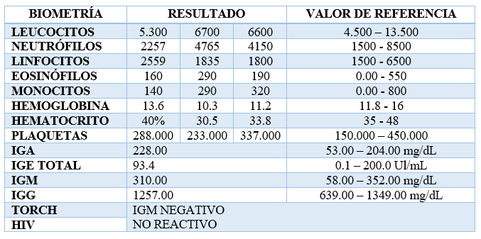 Sin embargo, la situación provocada por la pandemia de COVID-19 provocó la interrupción del seguimiento por especialidades médicas correspondientes. En abril de 2021 es llevada a recibir atención médica por presentar cuadro de tos intermitente y hemoptisis aislada en una ocasión, lo que se asoció con los hallazgos radiológicos, aunque no se evidenciaron alteraciones en exámenes complementarios de laboratorio clínico (tabla 1), decidiendo ingreso para resolución quirúrgica.