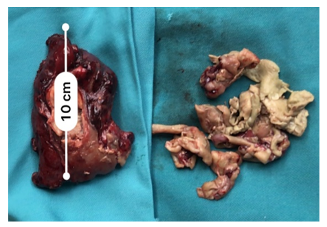 Figura 2.Lóbulo de pulmón y masa adherida a estructura