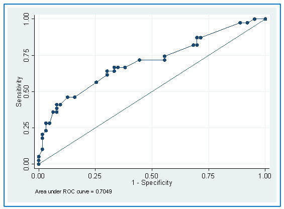 La adecuada calibración del modelo se constató mediante la prueba de Hosmer Lemeshow (p>0,05), sin que se apreciaran diferencias entre los sextilos de riesgo, mostrando buen ajuste global (p>0,05). La capacidad de discriminación fue aceptable (ROC=0,70; IC=0,60-0,81) y robusta; aunque, se identificaron dos grupos de outliers (valores atípicos) y un grupo de potenciales influyentes que no produjeron alteraciones ni tuvieron significación al concluir el análisis.