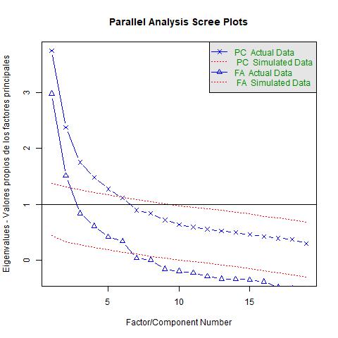 a. Análisis paralelo - Método de los componentes principales iteradas - naturaleza no paramétrica, cálculo del número de factores.