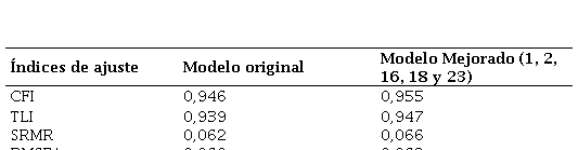 Tabla 3. Índices de ajuste de modelo por SEM