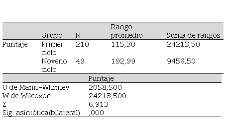 En la tabla 3, el valor del rango promedio de los puntajes del estrés académico en el primer grupo fue de 115,3 y en el segundo grupo fue de 192,5. El valor de la prueba no paramétrica U de Mann-Whitney es altamente significativa (p < 0,01), lo que indica que, hubo diferencia significativa en el estrés académico en el primer grupo con en el segundo grupo siendo esta significativamente mayor (192,5 > 115,3) que el primer grupo, con un valor de U de Mann-Whitney de 2058,5