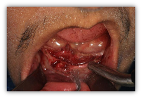 A modified continuous stitch was performed with 3/0 Nylon thread to prevent food accumulation and achieve a cleaner wound. (Figure 9)