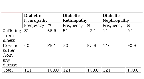 Compared with the study conducted at the General Hospital of Zone 2 in Salina Cruz, Oaxaca, the results of the current investigation show notable differences in the prevalence of microvascular complications. In the study by Sadai et al. (2024), diabetic neuropathy had a prevalence of 3.9%, nephropathy 29.2%, and retinopathy 14.4%, with 31.7% of patients presenting at least one micro- or macrovascular complication. In contrast, in our sample of 121 participants, the rates of neuropathy (69.9%), retinopathy (42.1%), and nephropathy (9.1%) were considerably higher, which could indicate differences in the severity of diabetes in the study populations or variations in diagnostic methods. Furthermore, as in the study by Sadai et al, some patients were observed to have more than one complication at the same time, which underlines the complexity of managing patients with type 2 diabetes mellitus and the high burden of complications associated with this disease. (27)