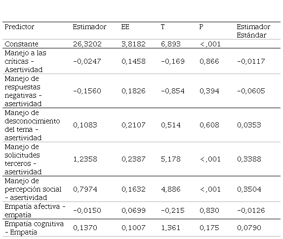 Tabla 3. Coeficientes del Modelo - Habilidades Sociales.