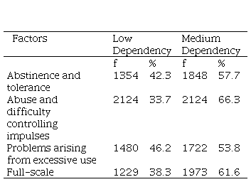 These results are consistent with other studies, (10,11,12) which indicate that people who use their mobile devices for more than three hours a day tend to develop a higher level of dependence. This suggests a direct relationship between the time spent using a cell phone and the level of dependence that develops.