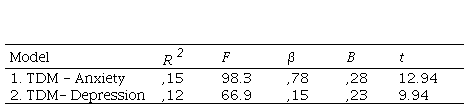 Table 5. Linear regression between mobile device dependence and internalized problems