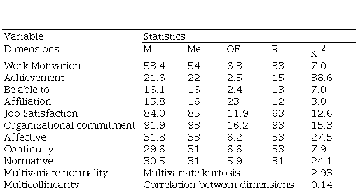 The organizational commitment was determined through the collecting information instrument proposed by Meyer et al. in 1993 (35) and validated in the Trujillo environment. (36) It had 18 items of three dimensions: affective, continuity, and normative. It presented a reliability through the Omega index of 0.82.