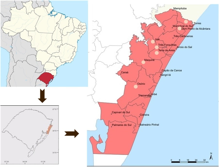 O Litoral Norte do estado do Rio Grande do Sul é composto por 21 municípios, os quais totalizam uma área de 7.115,8 km² e população de 323.112 habitantes. Da população total, 83% residem nos espaços considerados urbanos e 17% nas zonas rurais. A região é culturalmente diversa, incluindo grupos da sociodiversidade brasileira, como povos indígenas e comunidades quilombolas[12] (IBGE, 2006; FEE, 2016).