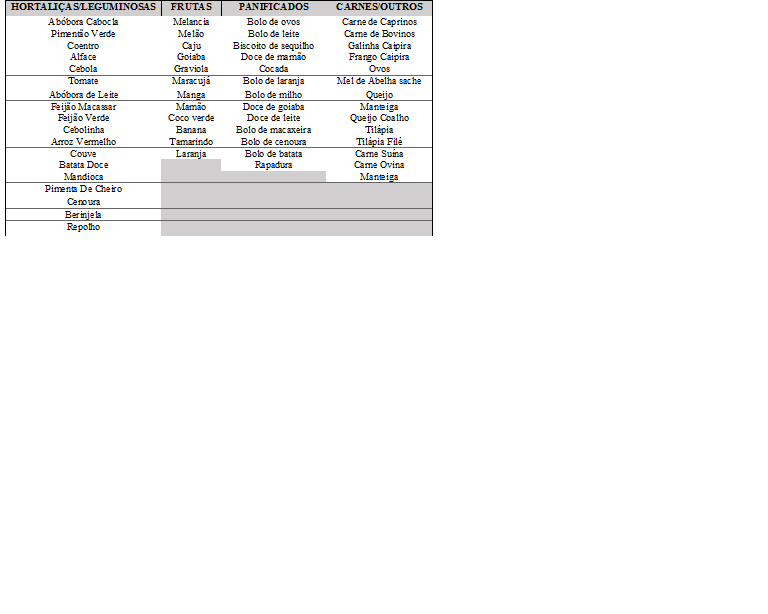 O Quadro 1 apresenta uma variedade de produtos produzidos pela agricultura familiar na região Nordeste e adquiridos por meio do PNAE, expressando tanto a valorização da diversificação quanto do caráter tradicional dos alimentos regionais, muitos desprezados pelos defensores da modernização, por serem considerados residuais e sem importância econômica e analítica. Produtos, a exemplo do feijão verde, arroz vermelho, batata doce, jerimum (abóbora), coentro, carnes de pequenos animais (galinhas, caprinos, peixes etc.) foram introduzidos pelas escolas públicas do Nordeste. Essa ação do PNAE afirma a diversidade dos produtos dos agricultores familiares do Nordeste e tende a reforçar, de forma positiva, hábitos alimentares locais e regionais.
