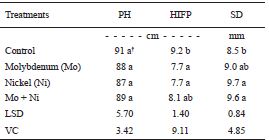The experiment was organized in a randomized block design with four treatments: i) Control, ii) Ni, iii) Mo and iv) Ni+Mo and five replicates. Each plot was two meters wide and five meters long. The sources used were nickel chloride with 29% nickel and sodium molybdate having 39% molybdenum.