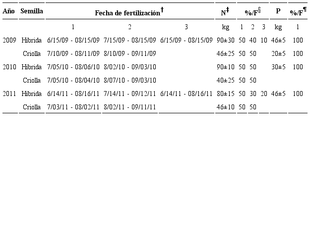 Para las parcelas analizadas, en el Cuadro 4 se resumen las dosis y fechas de fertilización.