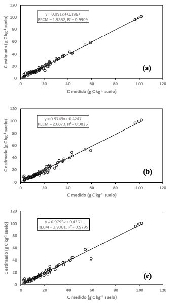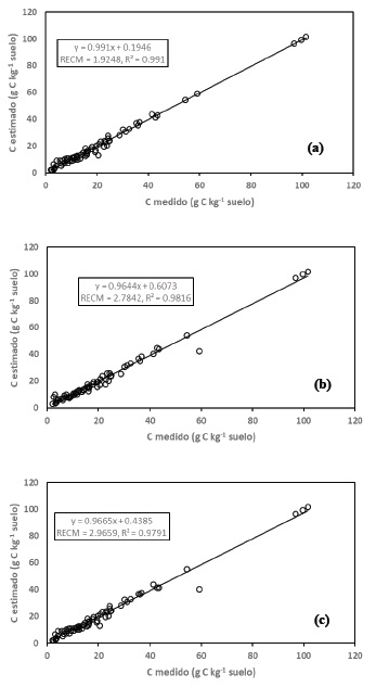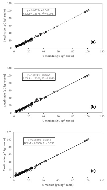 Adicional al uso del coeficiente de determinación R2, el ajuste estadístico de los modelos fue analizado usando la raíz del error cuadrático medio (RECM):