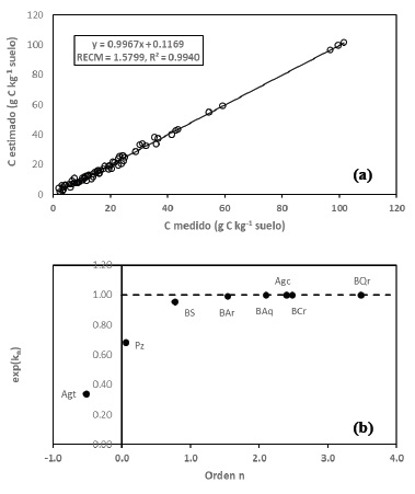 El modelo de cinética de orden n, rompe los esquemas de modelación tradicionales de cinéticas de orden uno y múltiples almacenes (Paustian, Collins y Paul, 2019; Manzoni et al., 2012), al considerar un solo almacén, pero con cinética de orden n variable, asociado al uso del suelo y su manejo.