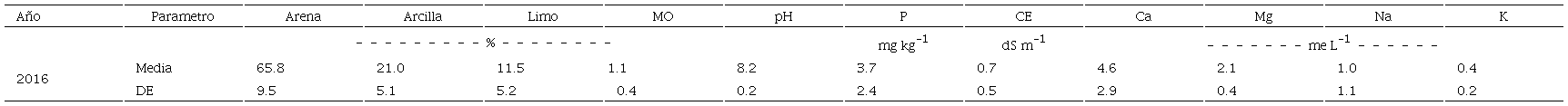 El análisis de laboratorio incluyó determinaciones físico-químicas como: textura, densidad aparente, capacidad de campo, punto de marchitez permanente, pH, conductividad eléctrica (CE), contenido de materia orgánica (MO), y los macronutrientes nitrógeno inorgánico (NO3), fósforo (P2O5) y potasio (K). En cuanto a la determinación de cationes en el extracto de saturación, los análisis de 1976 sólo incluyeron calcio (Ca), magnesio (Mg), potasio (K) y sodio (Na). Los análisis del año 2016 incluyeron aniones como cloro (Cl), bicarbonatos (HCO3-) y sulfatos (SO4-) y micronutrientes como el fierro (Fe), zinc (Zn), cobre (Cu) y manganeso (Mn).