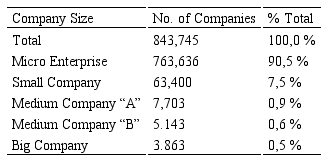 In this same sense, the average performance standard of SMEs in Latin America is equivalent to less than 40 % of the productivity of the big company (Valencia, Lambán & Royo, 2014), which leaves behind the SMEs in front of several countries, such as those of the European Union and the United States, where the sector reaches an average of 60 % (Mora, Vera & Melgarejo, 2015).