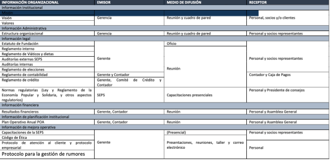 De esta manera, es imperativo para el buen funcionamiento y cumplimiento con las entidades regulatorias, atender las necesidades de información que tienen los socios comunitarios, en el cuadro contiguo se presenta los elementos de comunicación que se sugieren emplear: