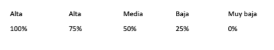 Se determinan los niveles de comunicación con los siguientes rangos de medición: