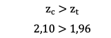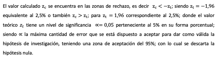 Al comparar el valor de Z calculado y el valor de Z teórico se obtuvo: