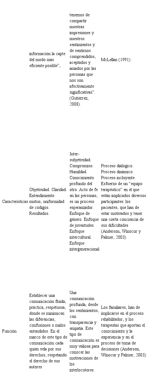 Finalmente, se considera que la comunicación afectiva y efectiva debería ser el elemento fundamental en toda rehabilitación y que centros de rehabilitación deberían profundizar en la enseñanza del diálogo significativo para optimizar los resultados que se alcanzan con los protocolos preestablecidos.