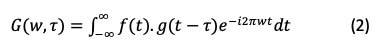 Una de las debilidades de la Transformada de Fourier es que no permite el análisis frecuencial localizado (Cárdenas., Ceballos., Shang-Hsueh., Pavez., & Terrisse., 2010). El método de la función ventana permite analizar el tiempo y frecuencia de la señal. Para este proceso se multiplica la señal original por la función ventana, que es la encargada de acotar la señal en un intervalo de tiempo. Esta transformación es llamada Transformada de Fourier en Tiempo Corto (STFT) y se define en (2).