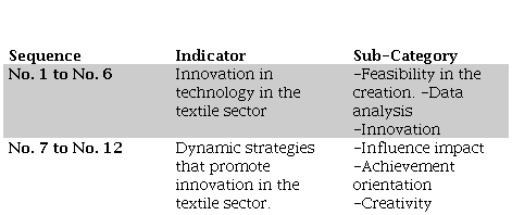 It is extremely important to highlight this sub-category, where the proposal is extremely clear and concise and is none other than achievement orientation, which seeks to provide the necessary tools to build a structure with a solid foundation that generates relevant ideas and strategies to achieve a line of benefits over the years and with the skills acquired on the proper management of technology in the textile sector in the canton of Esmeraldas, This sub-category is important, since it has a direct relationship with other sub-categories such as creativity, feasibility of creation and impact of influence, since they all go hand in hand, allowing to have a clear idea of the importance of innovation in the area of technology in the textile sector, generating an adequate inclusion in the technological world that is currently gaining prominence every day.