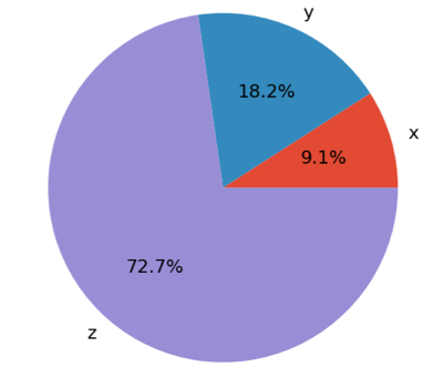 ax.pie((x, y, z), labels=('x', 'y', 'z'), autopct='%1.1f%%')