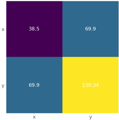 The heat map below consists of the x and y labels, and also the covariance matrix numbers.