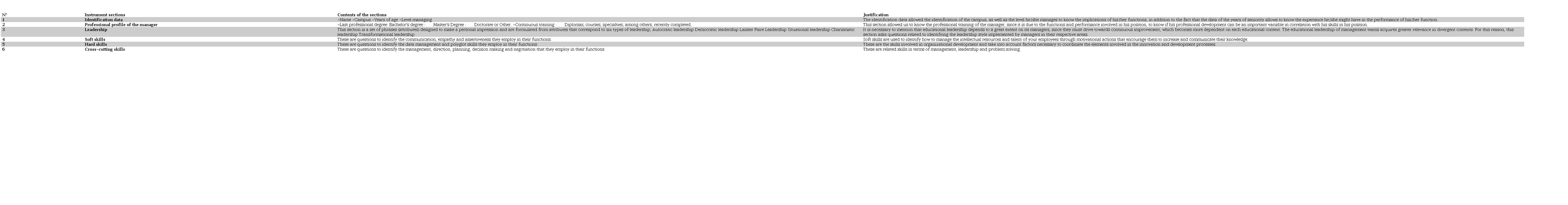 It is worth mentioning that the research instrument was structured in six sections that allowed obtaining information from the participants.